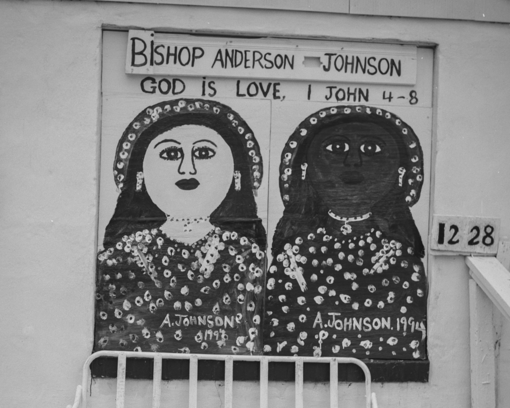 Elder Anderson Johnson spent his career preaching and playing steel guitar on the streets of America. His 1958 single, “God Don’t Like It,” was a local hit for Henry Stone in Miami, Florida. After its release, Johnson recorded a few more sides for the Angel, Glory, and Deluxe labels, before relocating to Newport News, Virginia. Here he built his church and began painting seriously, becoming a respected vernacular visual artist. His paintings recurrently featured women’s faces. To stunning effect, Johnson adorned the walls of his church with hand-painted figures and Bible-verses. And when it came to music, Johnson was never satisfied sticking to a single instrument: in addition to steel guitar and singing, he was also a talented pianist and drummer.