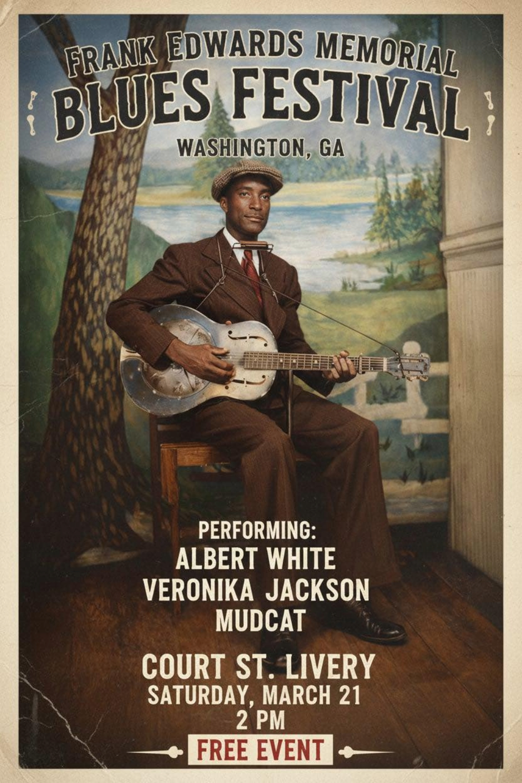 Head on down to the Court Street Livery in Washington, GA for the Frank Edwards Memorial Blues Festival, featuring performances by Albert White, Veronika Jackson, and Mudcat. Music begins at 2:00 PM. Free admission!